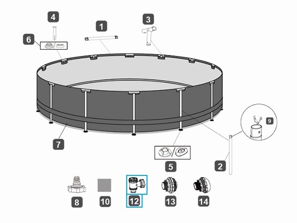 Bestway® Ersatzteil Eckventil für Power Steel™ Pools (56452 / 56427 / 56634), rund