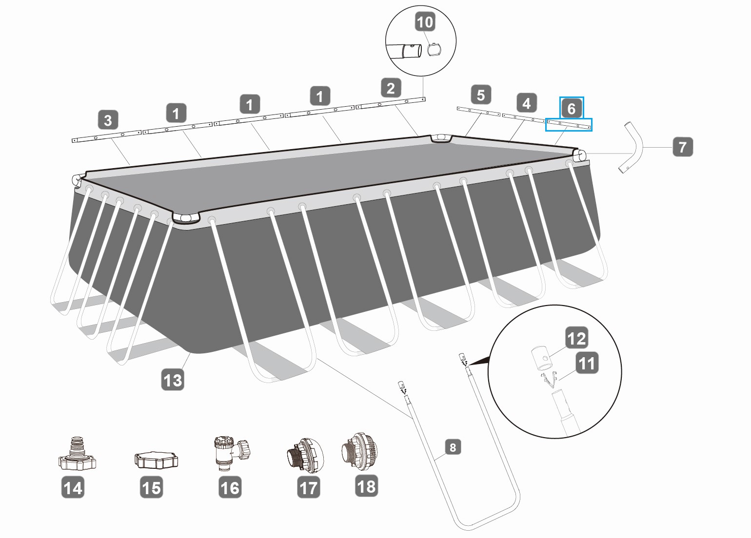 Bestway® Ersatzteil Horizontale Poolstange F (grau) für Power Steel™ Pools 732 x 366 x 132 cm, eckig