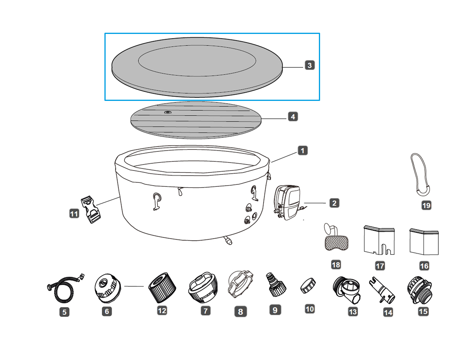 Bitte beachten Sie, dass es sich bei dem Ersatzteil für Ihren Whirlpool ausschließlich um die Abdeckung handelt und nicht um das aufblasbare Kissen. Dieses aufblasbare Kissen können Sie separat erwerben.