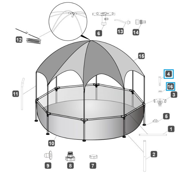 Bestway® Ersatzteil-Set Sicherungsbolzen + Dichtung (weiß / je 5 Stk) für Steel Pro™ UVCareful™ Pool